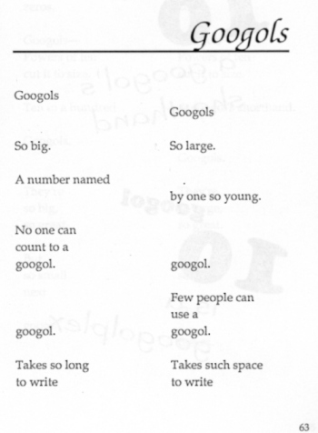 Some of the math concepts in the poems are fairly simple ideas that would pertain to a grammar school student, however most of the ideas are for middle schoolers or high schoolers. There were a few math concepts I had never heard of, such as fractals, (the geometry of nature), Fibonacci numbers (adding the last two numbers in a series to give the next number), and Mobius strips (circular strip with a twist in it).